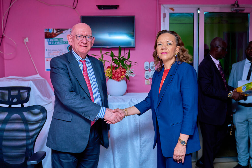 Le Vice-Président de la Banque mondiale, Dennis McLaughlin, et la Ministre de la Santé, Elza Ayo, saluent les résultats du déploiement du SIS à l’Hôpital de la Coopération égypto-gabonaise.