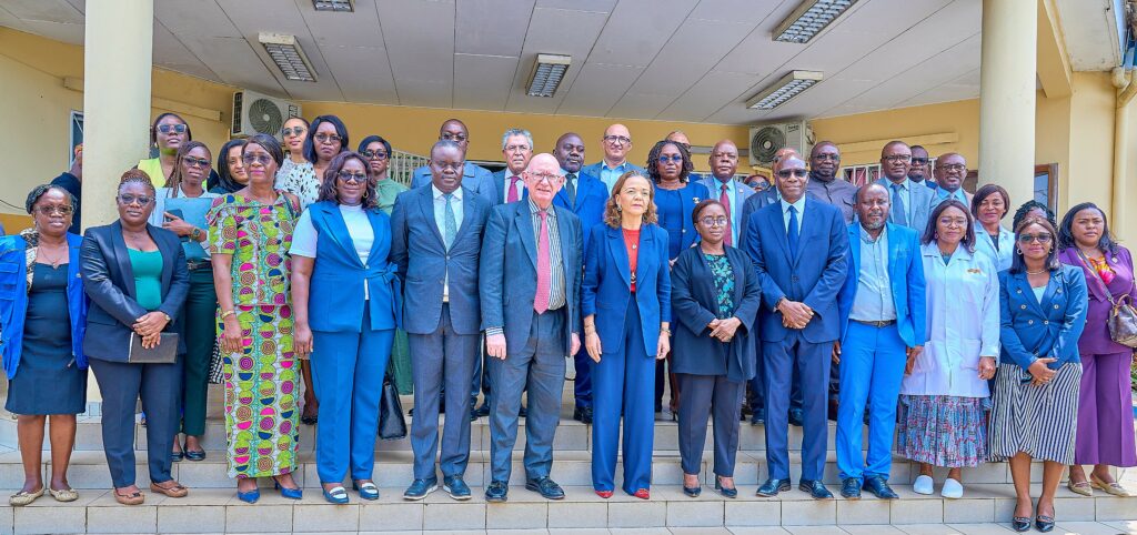 Photo de famille des officiels et des équipes médicales au terme de la visite du SIS à l’Hôpital de la Coopération égypto-gabonaise.